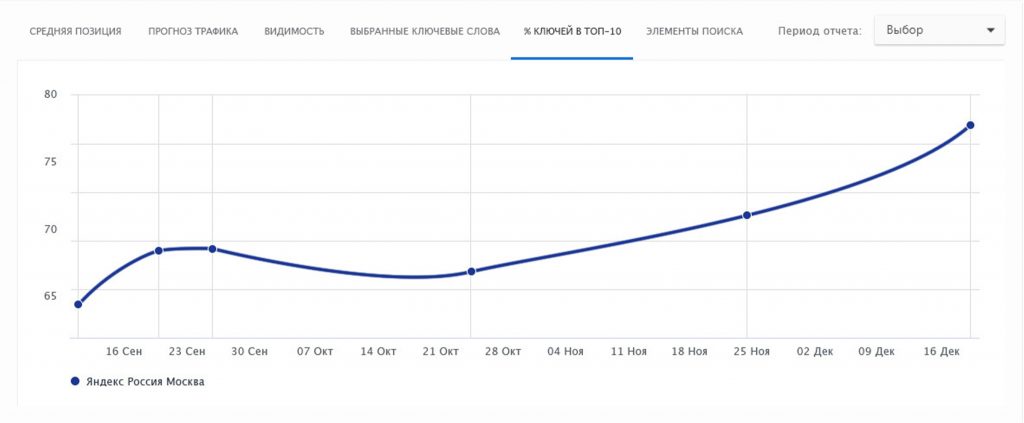 Мы работали с клиентом в течение 3 месяцев, и за это время 70% запросов добралось до ТОП-10. И это — благодаря использованию нескольких маркетинговых инструментов: