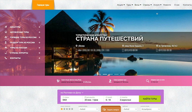 Клиент — московская турфирма с хорошей репутаций и высоким рейтингом. Компания обратилась в наше digital-агентства OSN-Marketing с запросом о продвижении в поисковых системах своего недавно созданного сайта. Мы провели консультацию с клиентом, проанализировали рынок и согласовали цели, которые должны были достичь по запросу.
